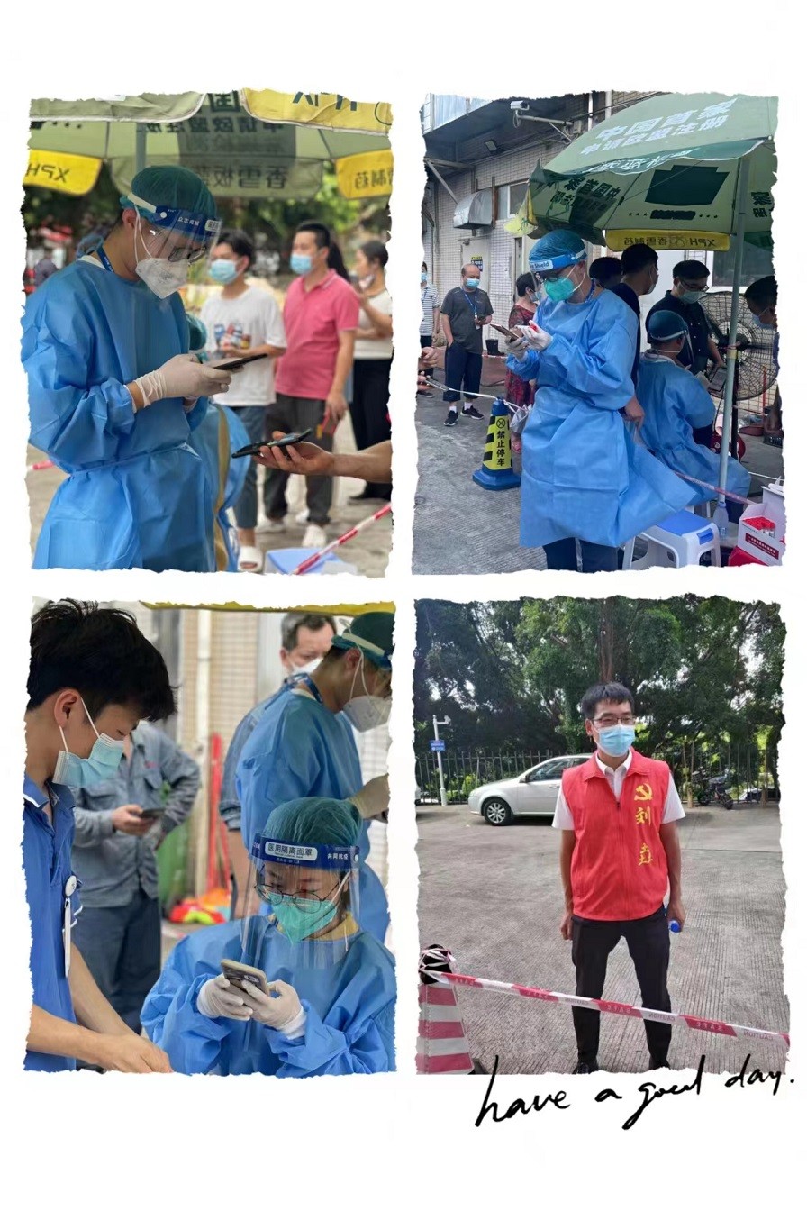 为起劲响应社区防控要求,,,,,,,,充分验展党员先锋模范作用,,,,,,,,7月18日bet365亚洲唯一官网科技党支部组织党员同志加入疫情防控事情,,,,,,,,支部党员刘垚、于园、胡仁涛同志及生长工具王淮边同志加入了疫情防控事情,,,,,,,,为核酸检测扫码挂号,,,,,,,,维持秩序。。。。。。各人排队经由的时间,,,,,,,,都没有发明漂亮的于园同志,,,,,,,,潇洒的胡仁涛同志,,,,,,,,帅气的王淮边同志变身臃肿的大蓝,,,,,,,,在大电扇一股股热风中挥汗如雨,,,,,,,,几个小时下来腰酸背痛,,,,,,,,人都有点虚脱了。。。。。。可是能够为深圳的防疫事情尽到一点力量,,,,,,,,他们年轻的脸上尽是知足的笑容。。。。。。今天的核酸点飘扬的是bet365亚洲唯一官网科技党支部的旌旗。。。。。。
